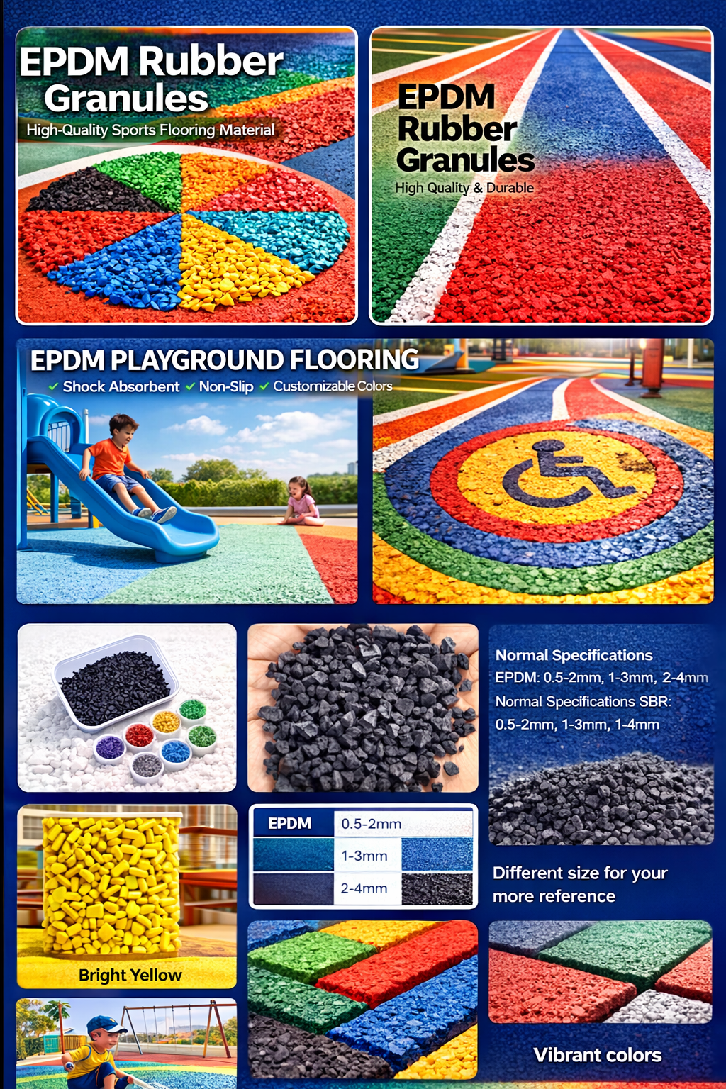 • Flexible Granule Sizing: From fine 0.5-1mm for synthetic turf infill to coarse 1-4mm for thick safety layers.