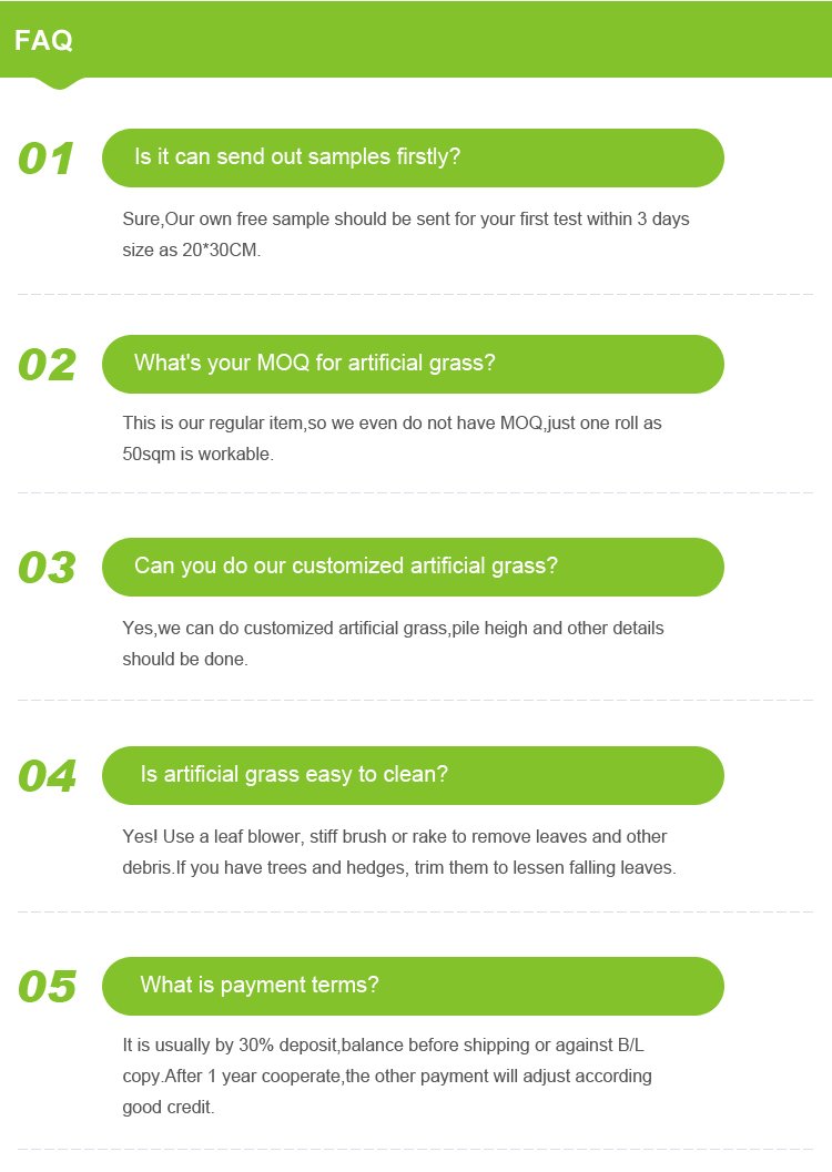 4.WATERPROOF:Our artificial grass backing madeof PP+Sbr latex or PP+net+Sbrlatex,it is workable if adding net or not. No matter single backing ordouble backing,there are 30-40drainage holes per sqm.